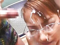Japanese cougar in silk sucks a big